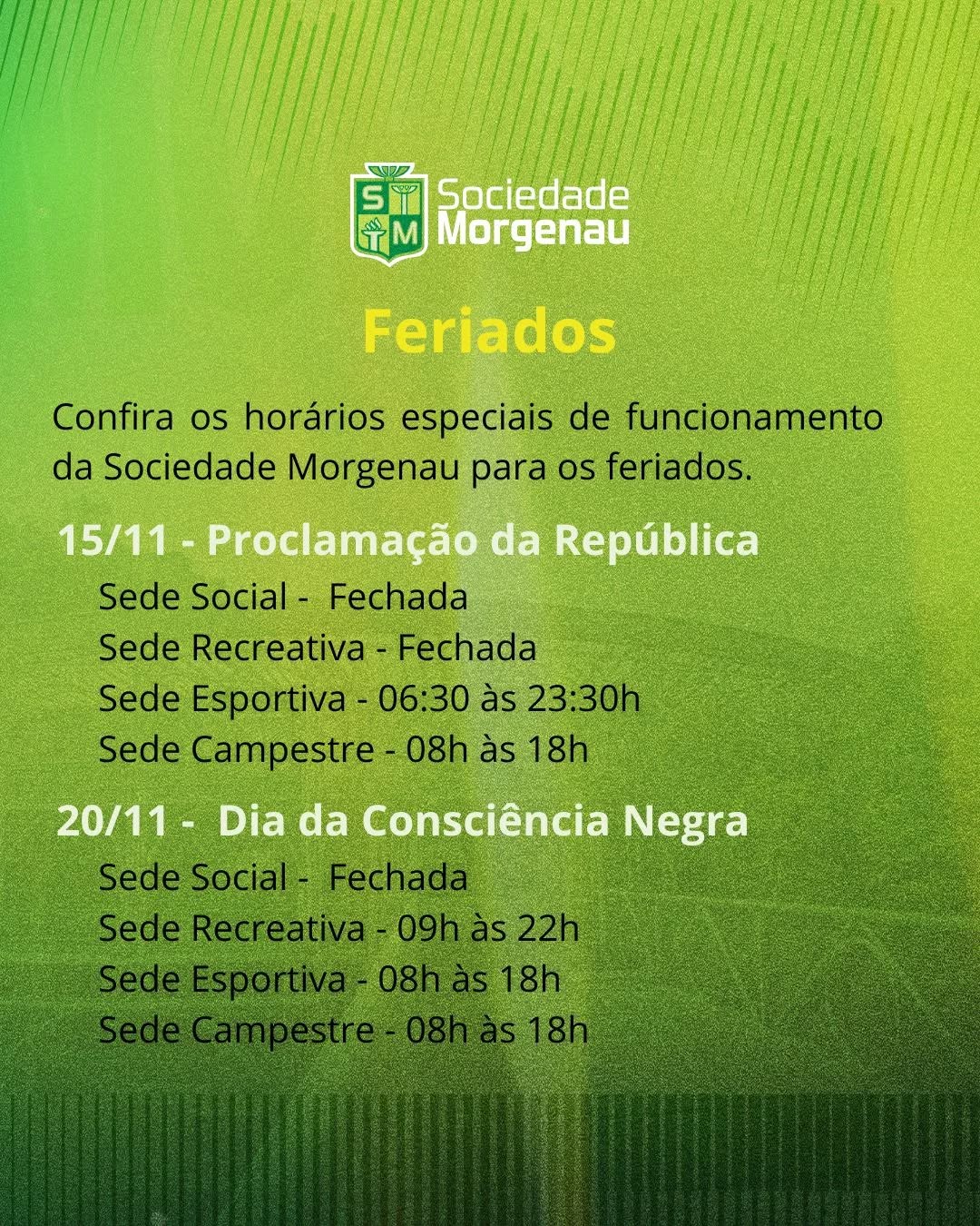 novembro 13, 2025 | by: Morgenau |Categorias: Avisos Confira o horário de funcionamento nos feriados de novembro