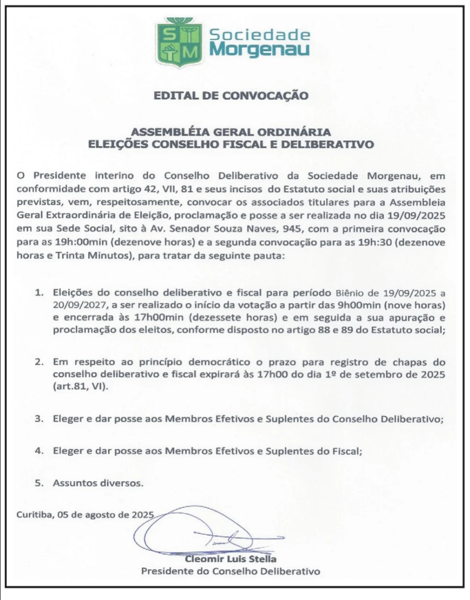 Convocação assembléia Geral Ordinária